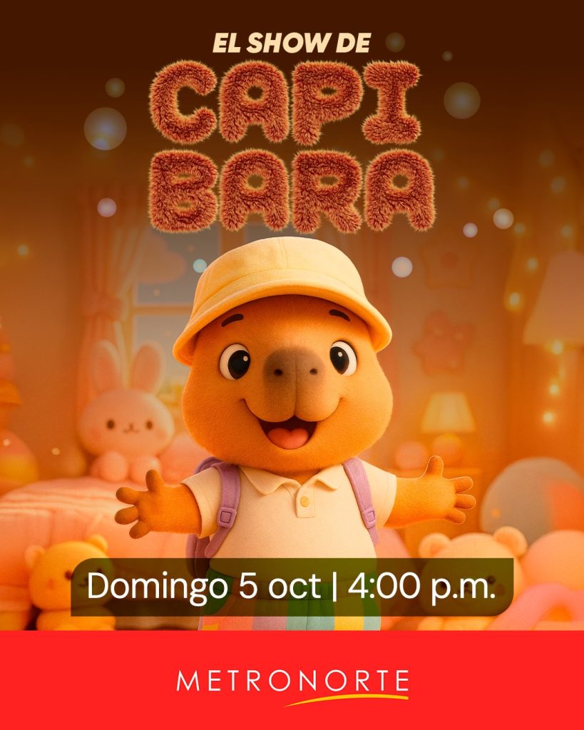 Este domingo 5 de octubre a las 4:00 p.m. acompáñanos a disfrutar del divertido Show de Capibara