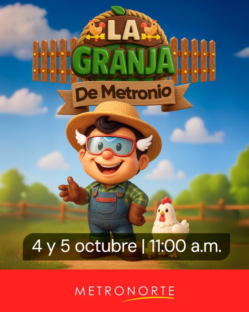 ¡La granja llega a Metronorte!  Este 4 y 5 de octubre a las 11:00 a.m. disfruta de la Granja de Metronio, una experiencia donde los niños podrán convivir y aprender de cerca con animales de granja.